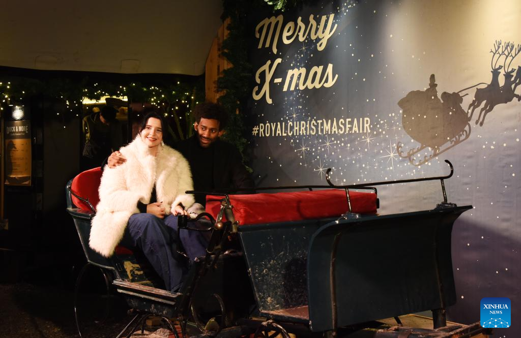 People pose for photos at the Royal Christmas Fair in The Hague, the Netherlands, Dec. 6, 2025. Kicking off here on Dec. 4, the fair will run until Dec. 23. (Xinhua/Shao Haijun)