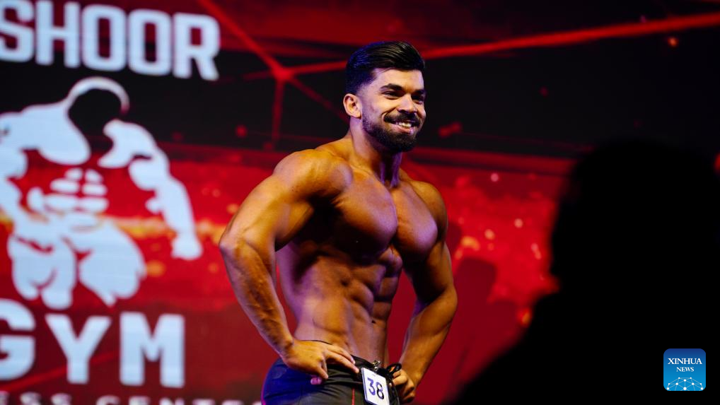 A contestant competes during a bodybuilding championship of the fifth edition of the Ashour Classic Championship in Tripoli, capital of Libya, Dec. 6, 2025. (Photo by Hazem Turkia/Xinhua)