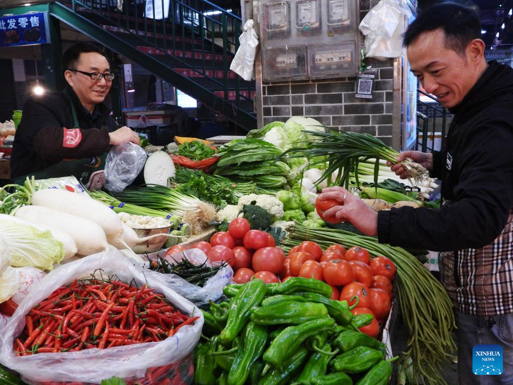 A consumer selects vegetable at a market in Dazhou City, southwest China's Sichuan Province, Dec. 10, 2025. China's consumer price index (CPI), a main gauge of inflation, rose 0.7 percent year on year in November, data from the National Bureau of Statistics showed Wednesday. (Photo by Deng Liangkui/Xinhua)