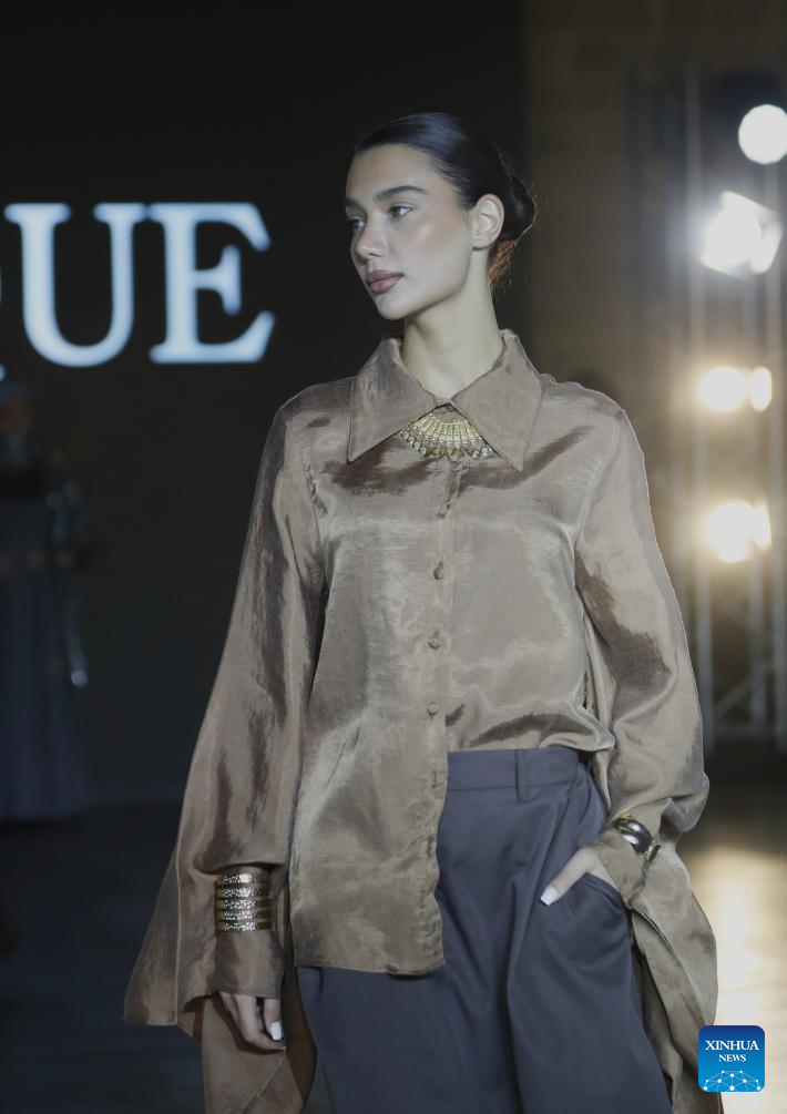 A model walks the runway at the Azerbaijan international fashion week in Baku, Azerbaijan, on Dec. 9, 2025. The two-day international fashion week concluded here on Tuesday. (Xinhua/Chen Junfeng)