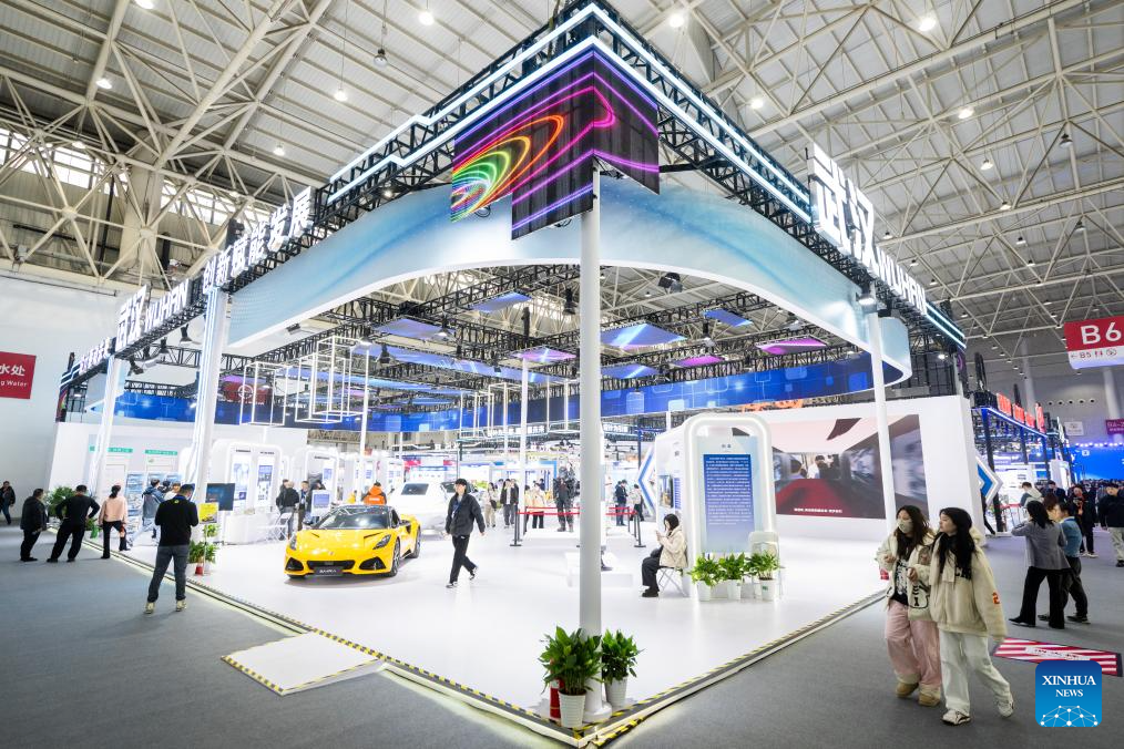 People visit the 2025 Wuhan International Industrial Design Expo in Wuhan, central China's Hubei Province, Dec. 12, 2025. The expo kicked off here on Friday, featuring ten specialized exhibition areas including low-altitude economy, AI empowerment, and future industries. More than 100 enterprises participated in the exhibition. (Xinhua/Xiao Yijiu)