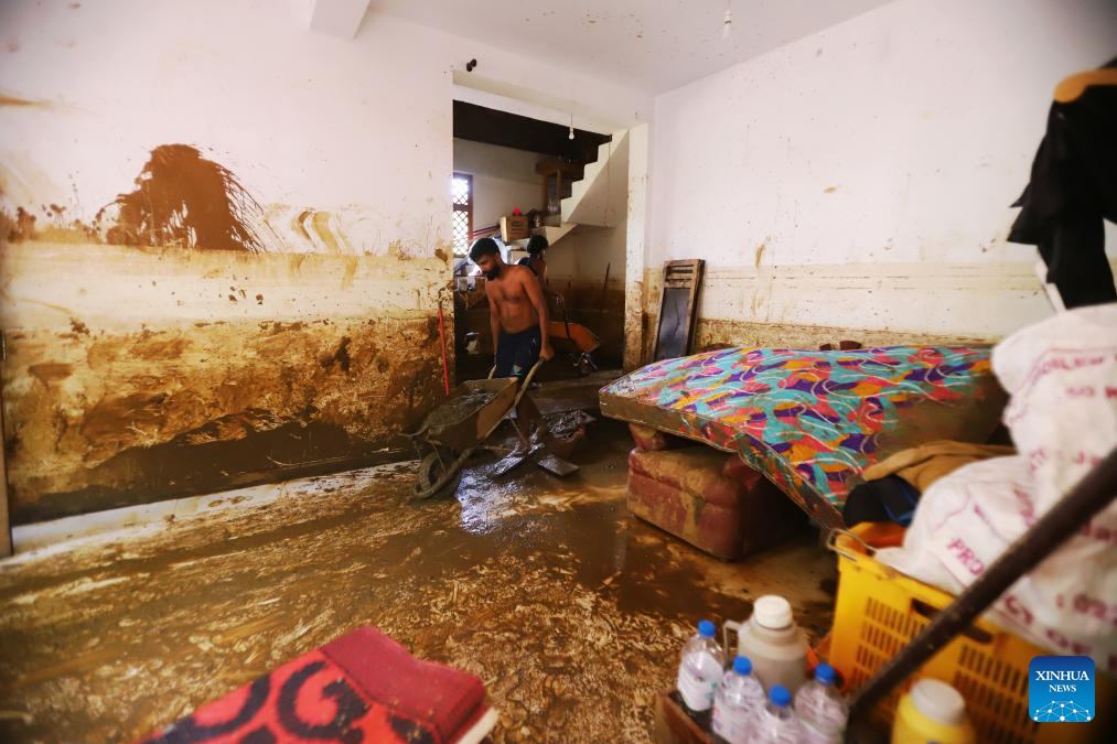 Residents clean mud from a damaged house affected by Cyclone Ditwah in Badulla District, Sri Lanka, Dec. 12, 2025. According to Sri Lanka's Disaster Management Center, the country recently suffered severe damage due to the extreme weather triggered by Cyclone Ditwah, which left more than 600 people dead, affected more than 2 million people, destroyed more than 4,000 houses and partially damaged more than 60,000 houses nationwide. (Photo by Ajith Perera/Xinhua)