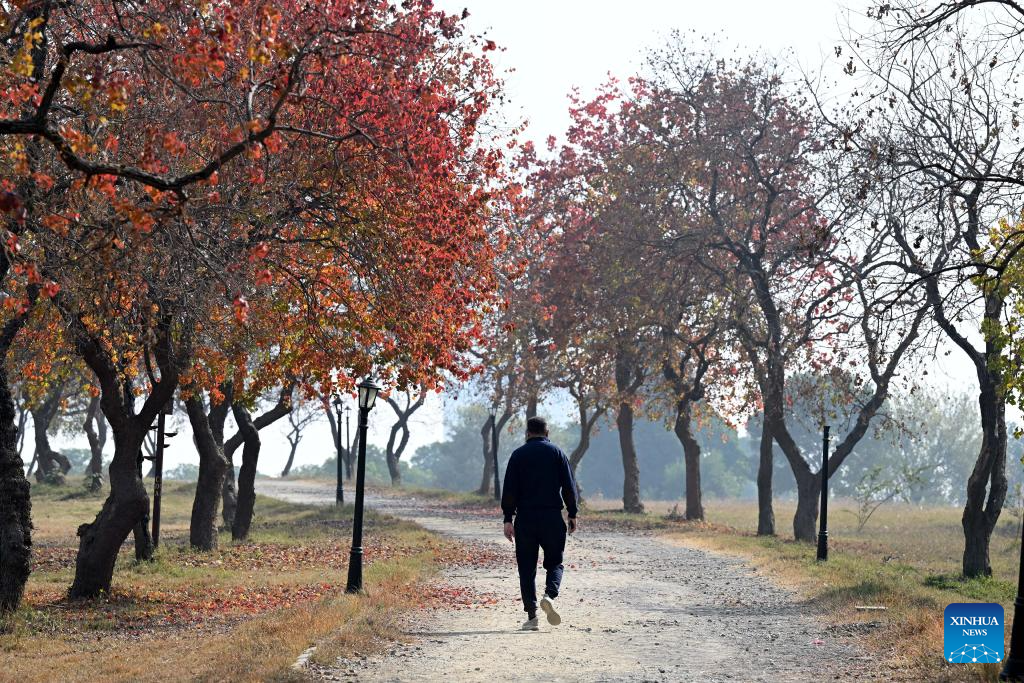 This photo taken on Dec. 12, 2025 shows a man walking at the Fatima Jinnah Park in Islamabad, capital of Pakistan. (Xinhua/Ahmad Kamal)