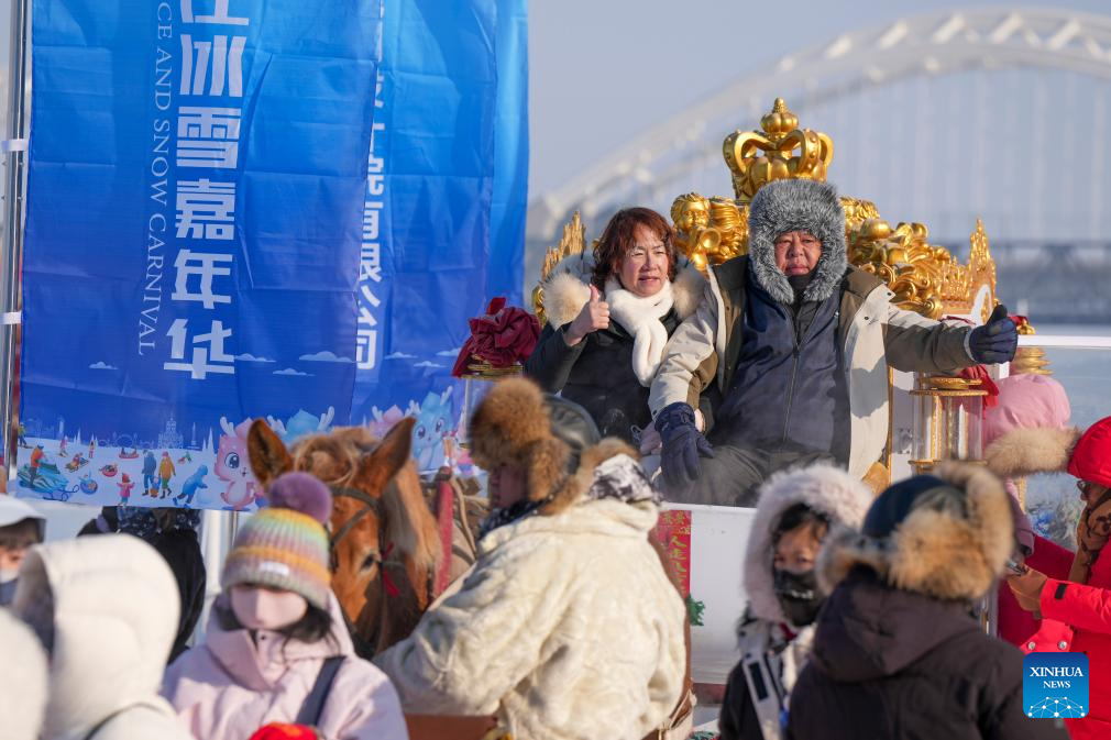 People have fun at Harbin Songhua River Ice and Snow Carnival in Harbin, northeast China's Heilongjiang Province, Dec. 25, 2025. The ice and snow carnival here kicked off on Thursday. (Xinhua/Wang Song)