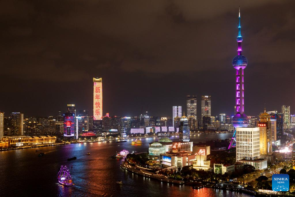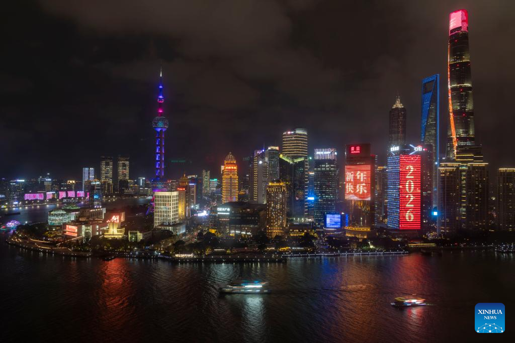 This photo shows the illuminated Lujiazui and North Bund area in celebration of the New Year in east China's Shanghai, Dec. 31, 2025. (Xinhua/Wang Xiang)