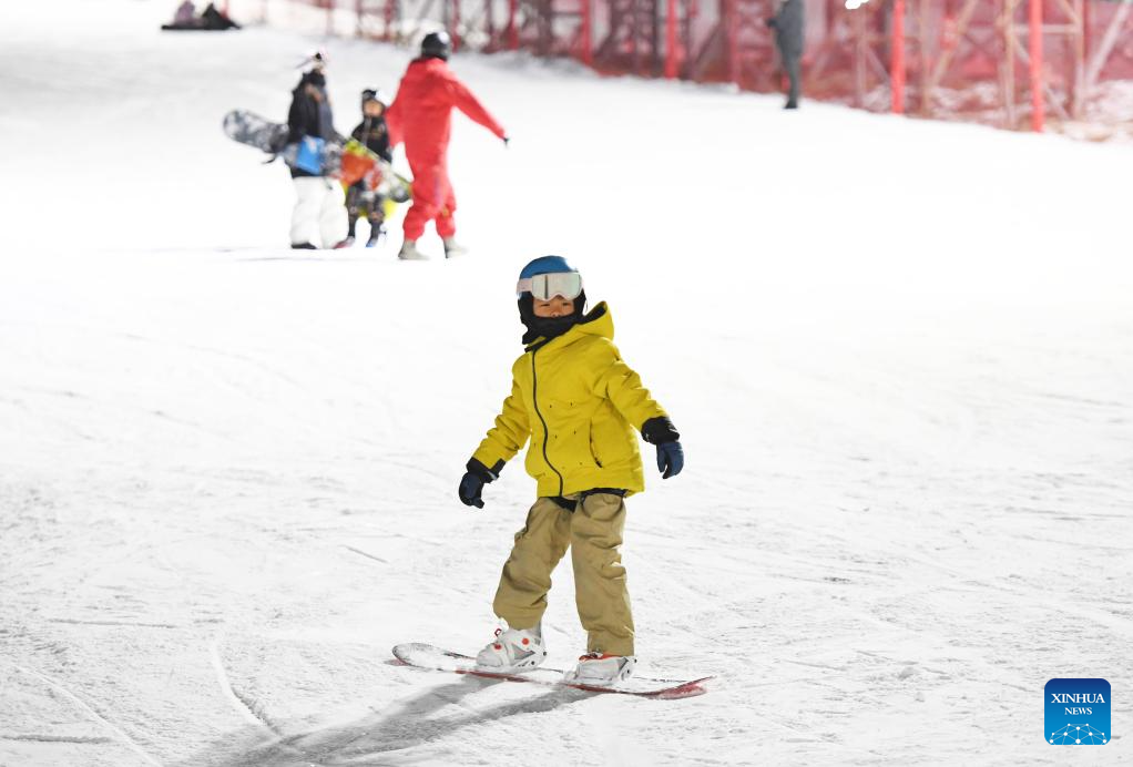 People ski at Beijing Yuyang International Ski Resort to greet the New Year, in Pinggu District of Beijing, capital of China, Dec. 31, 2025. (Xinhua/Ren Chao)