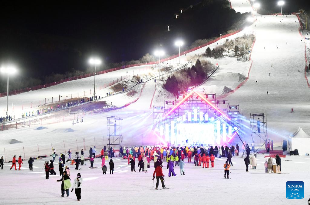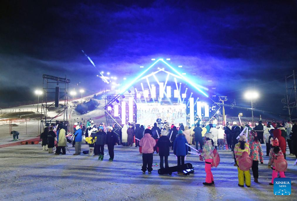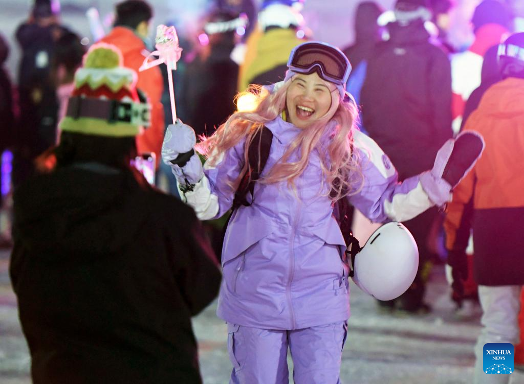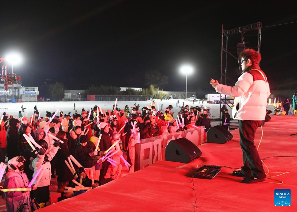 People have fun during a New Year celebration event at Beijing Yuyang International Ski Resort in Pinggu District of Beijing, capital of China, Dec. 31, 2025. (Xinhua/Ren Chao)
