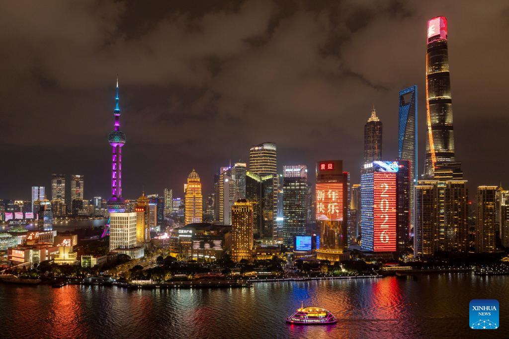 This photo shows the illuminated Lujiazui in celebration of the New Year in east China's Shanghai, Dec. 31, 2025. (Xinhua/Wang Xiang)