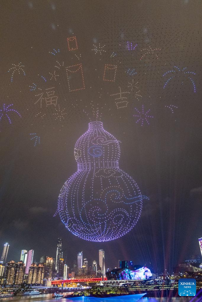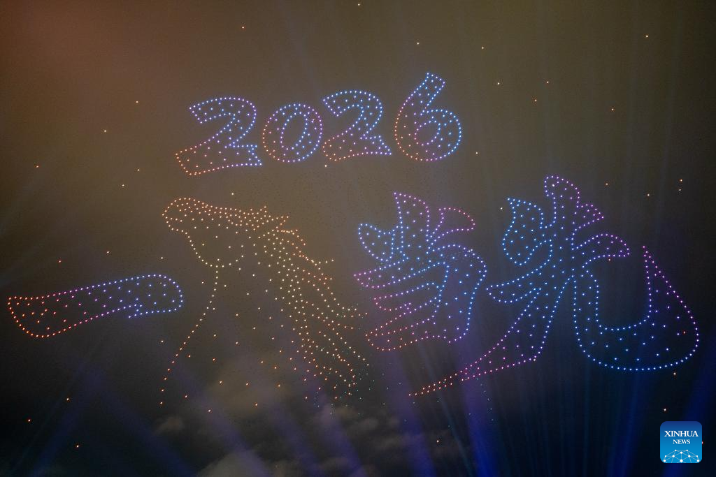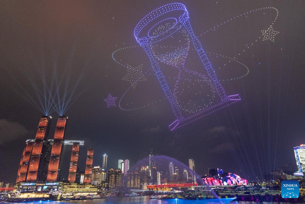 A drone light show is staged in celebration of the New Year in Nan'an District of Chongqing, southwest China, Dec. 31, 2025.