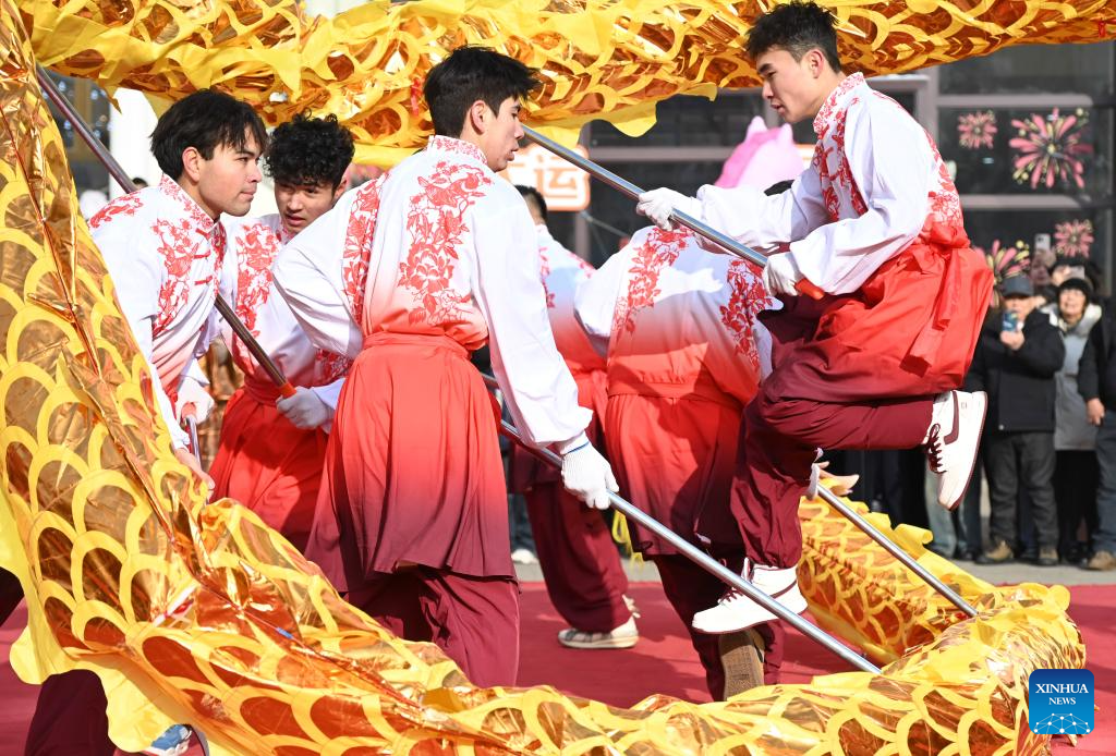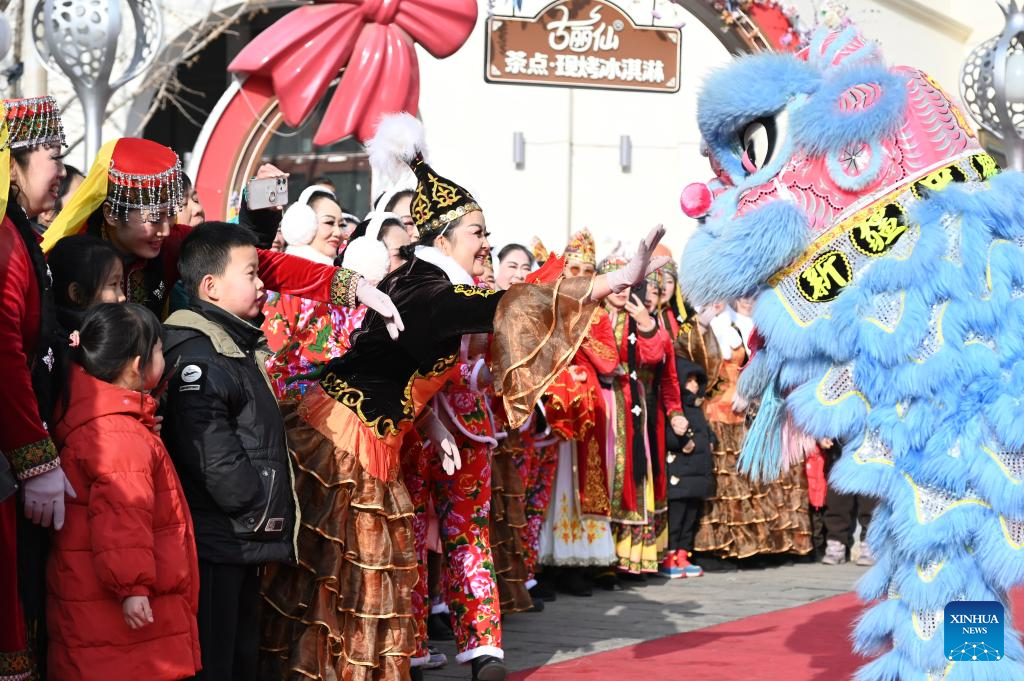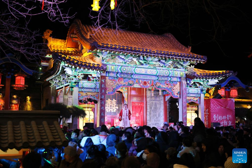 A performance is staged during a New Year celebration event in Yangliuqing ancient town in Tianjin, north China, Dec. 31, 2025.