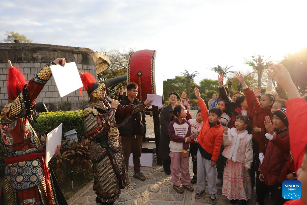 Tourists participate in a trivia session during a New Year-themed event at a scenic site in Xiamen, southeast China's Fujian Province on Jan. 1, 2026. People across China celebrate the arrival of 2026 with a wide range of festivities on Thursday, the first day of the year. (Photo by Zeng Demeng/Xinhua)