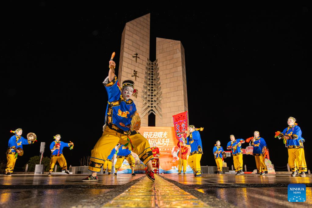 People perform the drum dance to ring in the New Year in Shitang Town of Wenling, east China's Zhejiang Province on Jan. 1, 2026. People across China celebrate the arrival of 2026 with a wide range of festivities on Thursday, the first day of the year. (Photo by Xu Weijie/Xinhua)