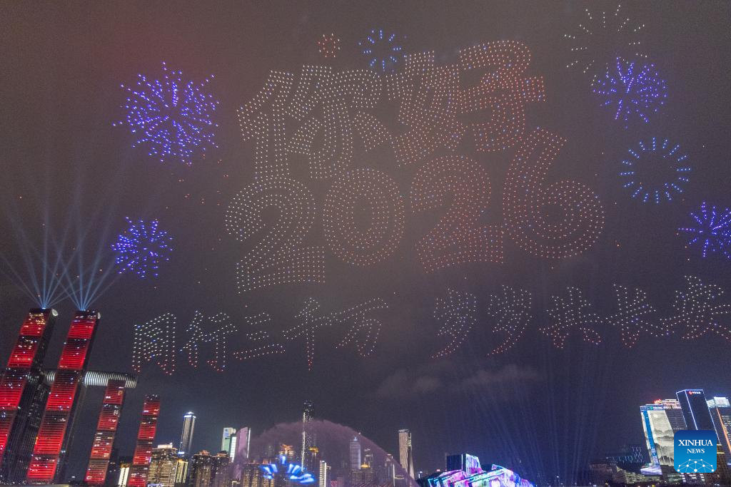 A drone light show is staged in celebration of the New Year in Nan'an District of Chongqing, southwest China, Jan. 1, 2026.