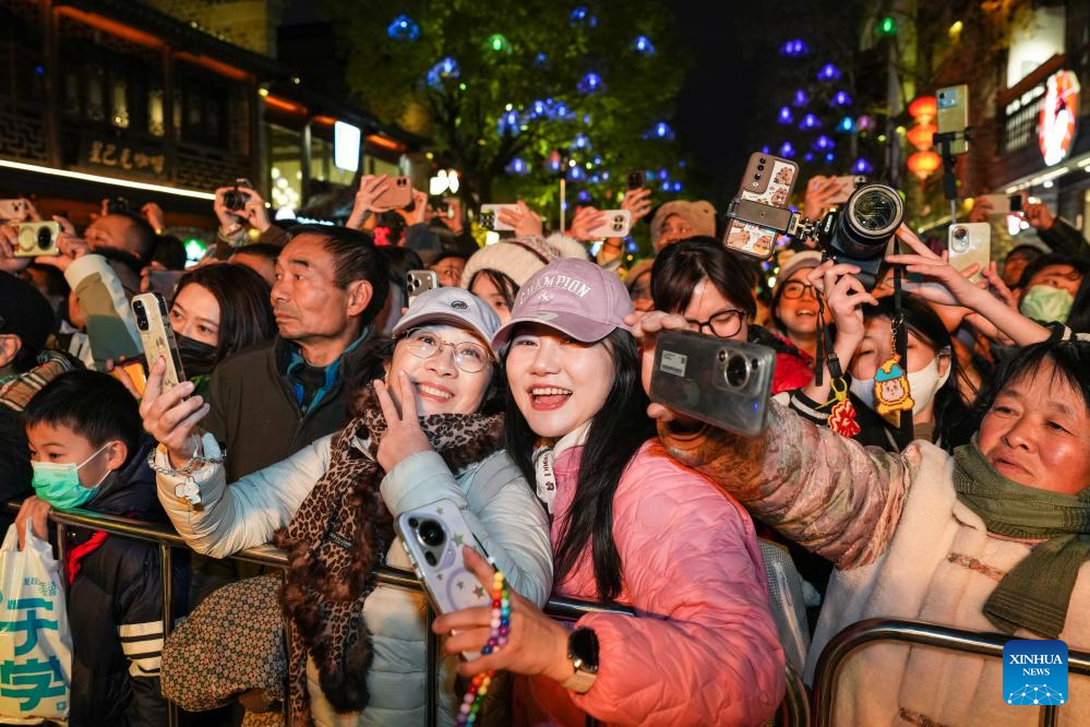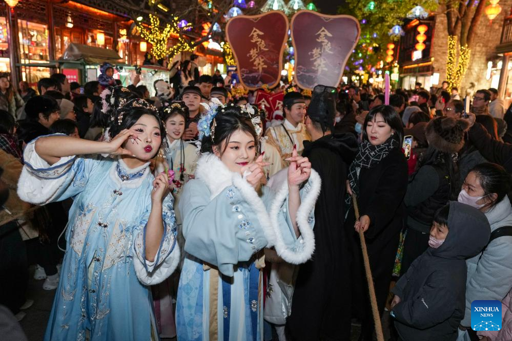 People visit the Mendong cultural and historical block in Nanjing, east China's Jiangsu Province, on Dec. 31, 2025. Various activities were held across China to celebrate the new year. (Xinhua/Li Bo)