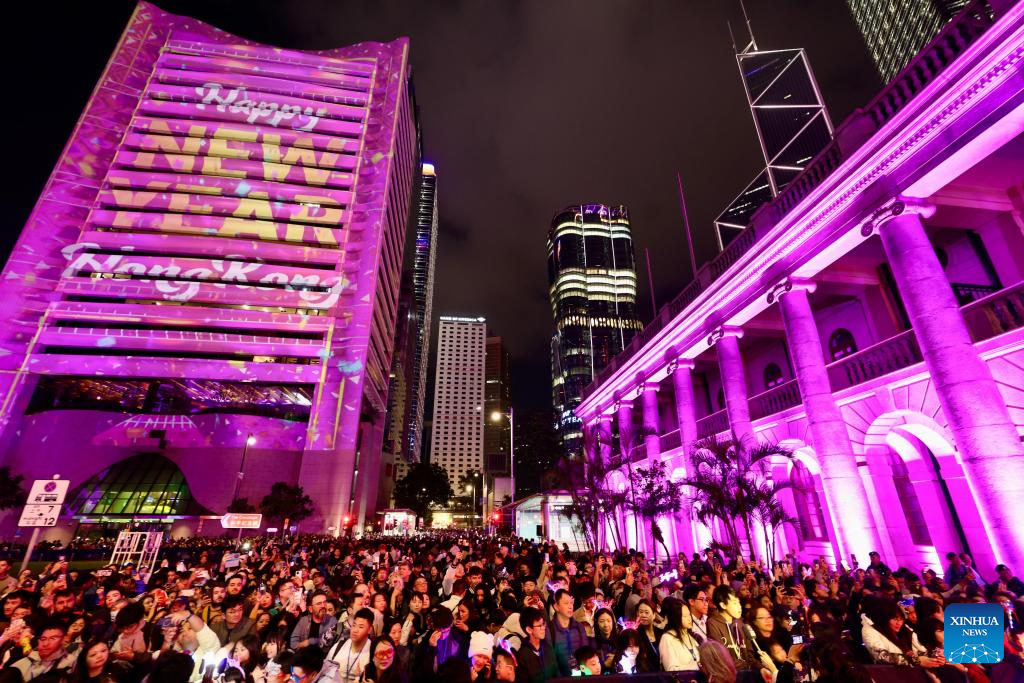 People gather for a New Year celebration event in Hong Kong, south China, Jan. 1, 2026.