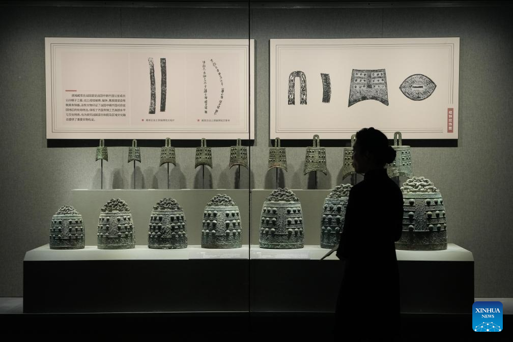 A woman visits an exhibition featuring culture of ancient Dongyi tribes at the Shandong Museum in Jinan, east China's Shandong Province, Jan. 9, 2026. The exhibition showcased over 110 pieces (sets) of cultural relics highlighting the culture of ancient Dongyi tribes. (Xinhua/Zhu Zheng)