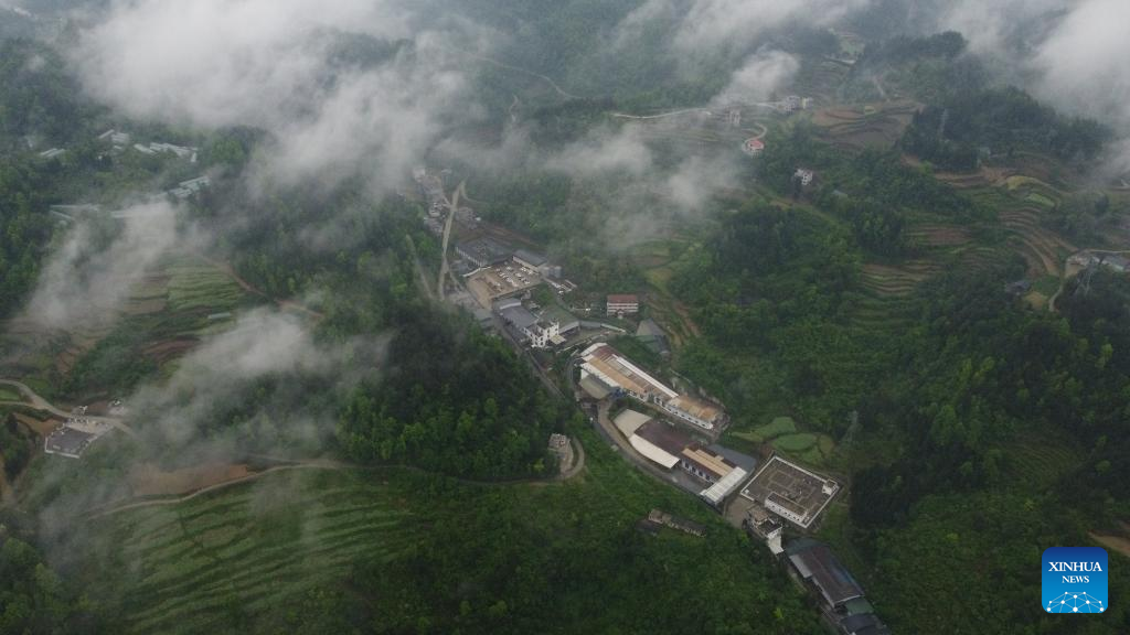 An aerial drone photo taken on April 26, 2025 shows a view of the Zhouzhai Village, Sinan County, southwest China's Guizhou Province. (Xinhua)