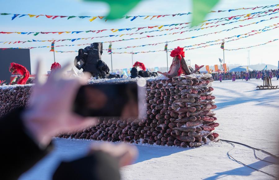 CHANGCHUN, Jan. 15 (Xinhua) -- A 42-pound "lucky fish" recently fetched a staggering 1.7 million yuan (about 242,000 U.S. dollars) at auction, marking a vibrant start to the Chagan Lake ice fishing season, turning the lake into the latest ice-and-snow magnet in China's snow belt.