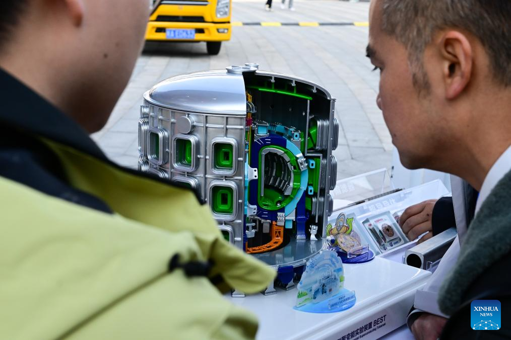 People view a model of the Burning Plasma Experimental Superconducting Tokamak (BEST) during the Fusion Energy Technology and Industry Conference 2026 in Hefei, east China's Anhui Province, Jan. 16, 2026. The conference is held here from Jan. 16 to Jan. 17, which aims to build a collaborative and progressive innovation and industrial ecosystem for nuclear fusion energy. (Xinhua/Zhou Mu)