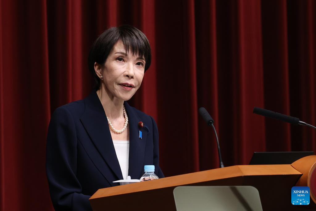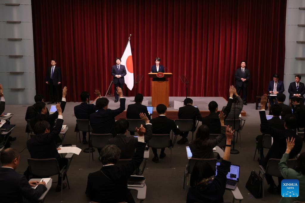 Japanese Prime Minister Sanae Takaichi speaks at a press conference at the prime minister's official residence in Tokyo, Japan, Jan. 19, 2026. Takaichi on Monday announced her plan to dissolve the House of Representatives on Jan. 23 for a snap general election set for Feb. 8. At a press conference, Takaichi said she will dissolve the 465-member lower house on Friday, the opening day of this year's ordinary parliamentary session. (Rodrigo Reyes Marin/Pool via Xinhua)