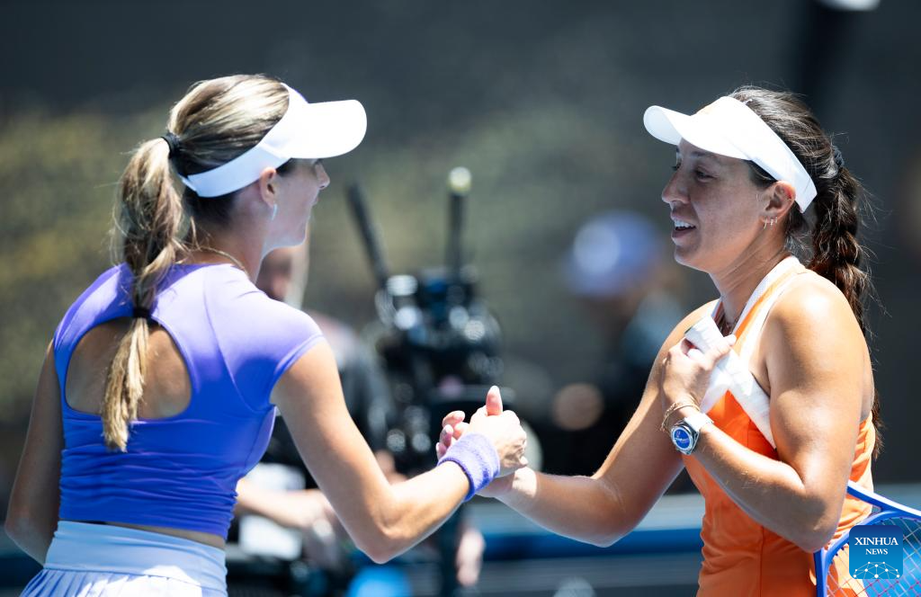 Jessica Pegula (R) of the United States and McCartney Kessler of the United States react after the women's singles 2nd round match at the Australian Open tennis tournament in Melbourne, Australia, Jan. 22, 2026. (Photo by Hu Jingchen/Xinhua)