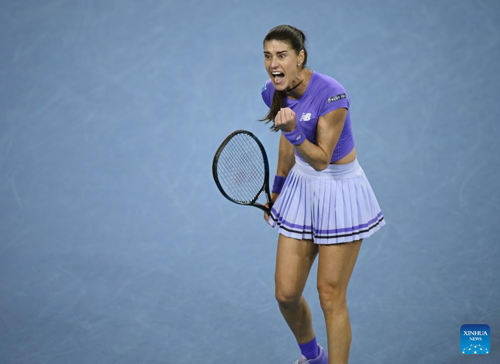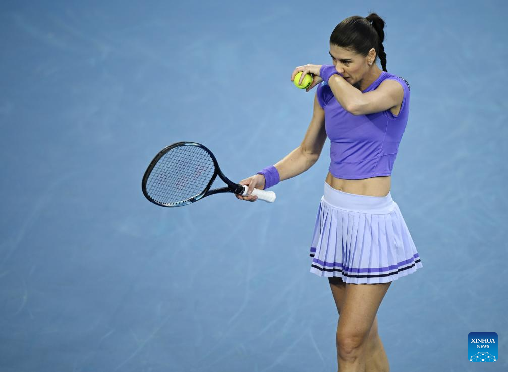 Sorana Cirstea reacts during the women's singles 2nd round match between Osaka Naomi of Japan and Sorana Cirstea of Romania at the Australian Open tennis tournament in Melbourne, Australia, Jan. 22, 2026. (Photo by Wang Shen/Xinhua)