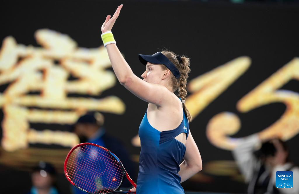 Elena Rybakina of Kazakhstan reacts after winning the women's singles 2nd round match between Elena Rybakina of Kazakhstan and Varvara Gracheva of France at the Australian Open tennis tournament in Melbourne, Australia, Jan. 22, 2026. (Photo by Hu Jingchen/Xinhua)