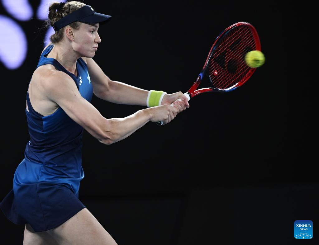 Elena Rybakina of Kazakhstan hits a return during the women's singles 2nd round match between Elena Rybakina of Kazakhstan and Varvara Gracheva of France at the Australian Open tennis tournament in Melbourne, Australia, Jan. 22, 2026. (Photo by Hu Jingchen/Xinhua)