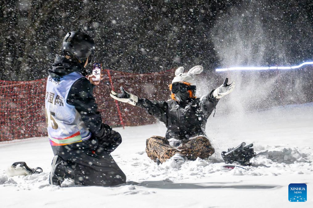 Tourists play at a ski resort in Shennongjia Forestry District, central China's Hubei Province, Jan. 19, 2026. In recent years, Hubei Province has leveraged its strategic location as a transportation hub connecting nine provinces, tapping into its unique ice and snow resources to vigorously develop the ice and snow tourism industry. Multiple locations in Hubei have become well-known ice and snow tourism destinations, attracting numerous tourists to experience the joys of winter sports. (Xinhua/Du Zixuan)