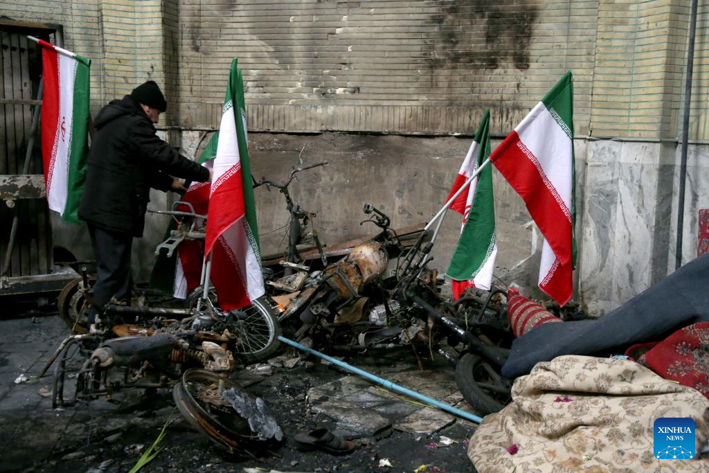 Vehicles damaged during a recent unrest are pictured in Tehran, Iran, Jan. 21, 2026. Iran's state television IRIB reported on Wednesday that 3,117 people were killed during recent unrest, citing the country's Forensic Medical Organization. (Xinhua/Shadati)