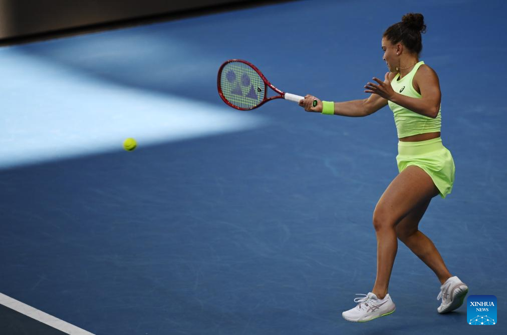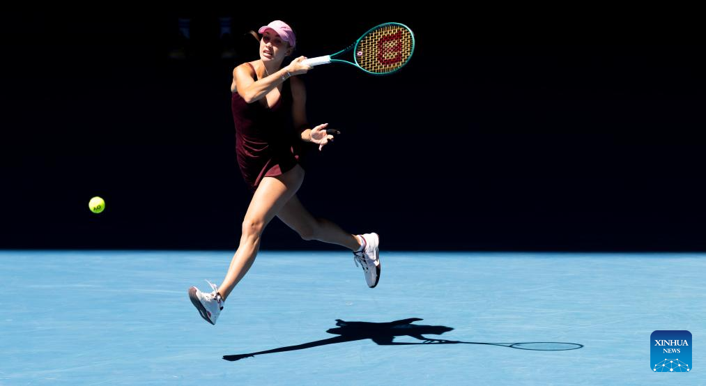 Iva Jovic of the United States hits a return during the women's singles 3rd round match against Jasmine Paolini of Italy at the Australian Open tennis tournament in Melbourne, Australia, Jan. 23, 2026. (Photo by Wang Shen/Xinhua)