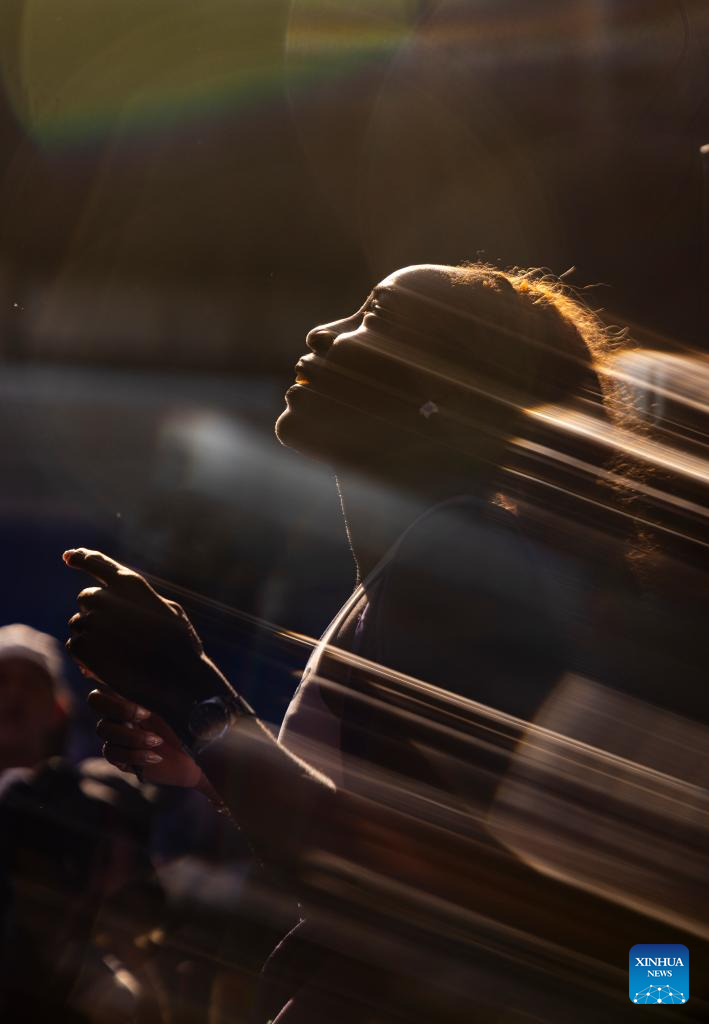 Coco Gauff of the United States talks to fans after the women's singles 3rd round match against Hailey Baptiste of the United States at the Australian Open tennis tournament in Melbourne, Australia, Jan. 23, 2026. (Photo by Hu Jingchen/Xinhua)