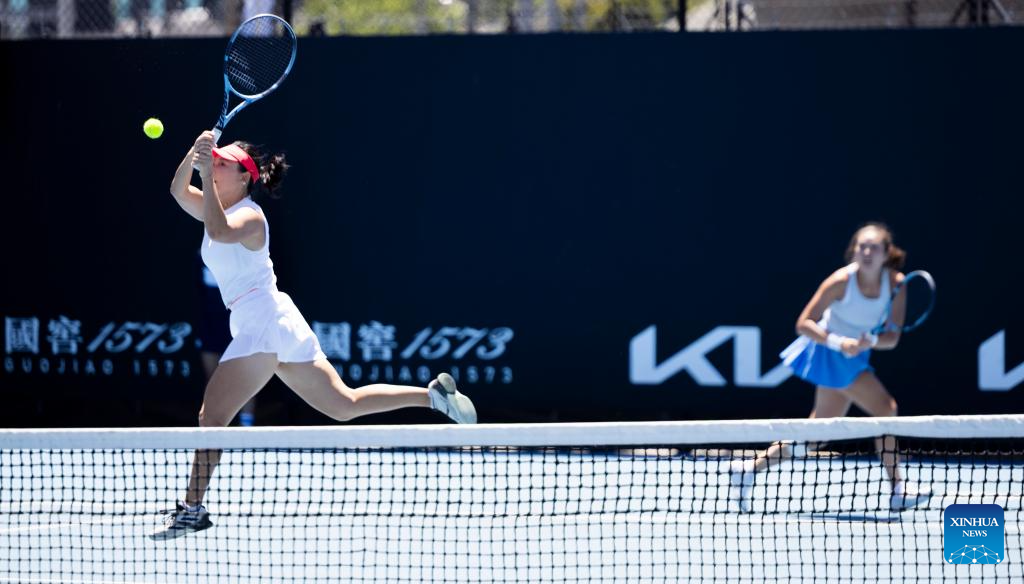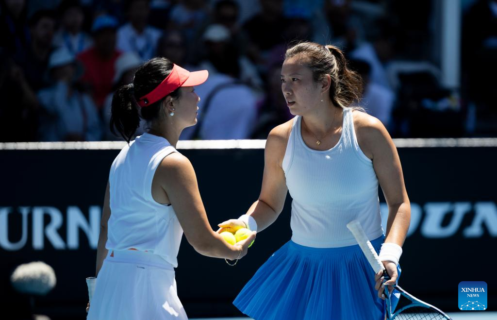 Xu Yifan(L)/Yang Zhaoxuan of China compete during the women's doubles 2nd round match against Taylor Townsend (the United States)/Katerina Siniakova (the Czech Republic) at the Australian Open tennis tournament in Melbourne, Australia, Jan. 23, 2026. (Photo by Hu Jingchen/Xinhua)