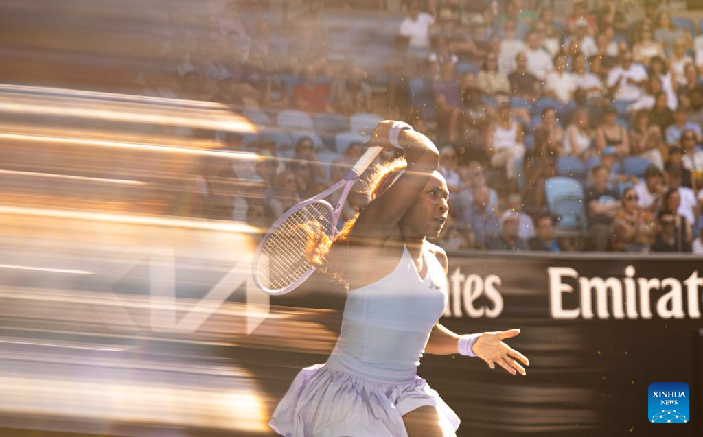Coco Gauff of the United States competes during the women's singles 3rd round match against Hailey Baptiste of the United States at the Australian Open tennis tournament in Melbourne, Australia, Jan. 23, 2026. (Photo by Hu Jingchen/Xinhua)