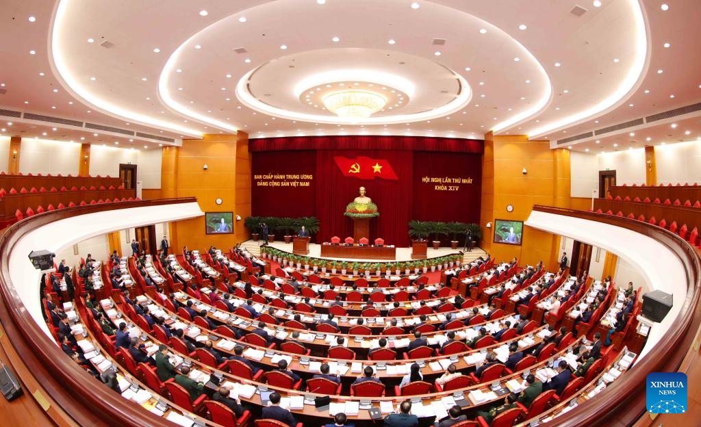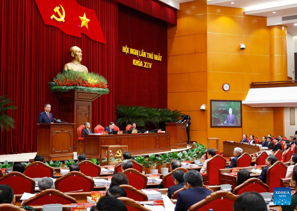 This photo taken on Jan. 23, 2026 shows a scene at the first plenary session of the 14th Communist Party of Vietnam (CPV) Central Committee in Hanoi, Vietnam. The first plenary session of the 14th CPV Central Committee voted for the CPV Political Bureau, Secretariat and Inspection Commission on Friday, according to a communique after the meeting. (VNA via Xinhua)