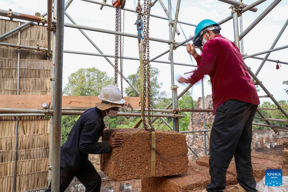 PHNOM PENH, Jan. 23 (Xinhua) -- Archaeologists have been restoring the ruined brick tower and laterite floor of Pre Rup temple in Cambodia's famed Angkor Archaeological Park, the APSARA National Authority (ANA) said in a news release on Friday.