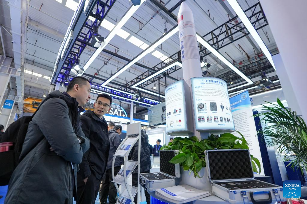 People visit the booth of Interstellar Glory at the 2026 Beijing International Commercial Space Exhibition in Beijing, capital of China, Jan. 23, 2026. The exhibition kicked off here on Friday. (Xinhua/Ju Huanzong)