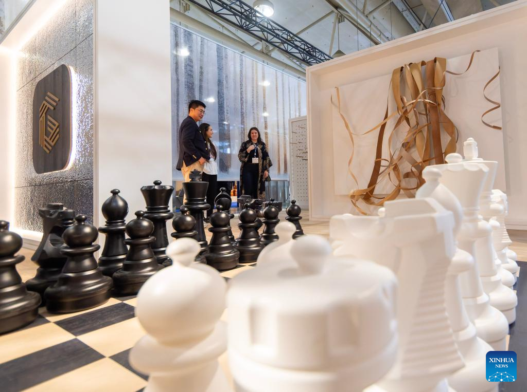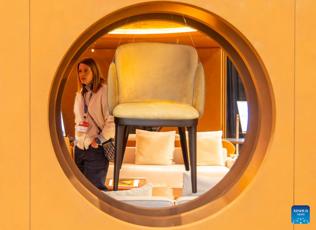 A visitor looks at design works during the Interior Design Show in Toronto, Canada, Jan. 22, 2026. The annual event kicked off here on Thursday and will run until Jan. 25. (Photo by Zou Zheng/Xinhua)