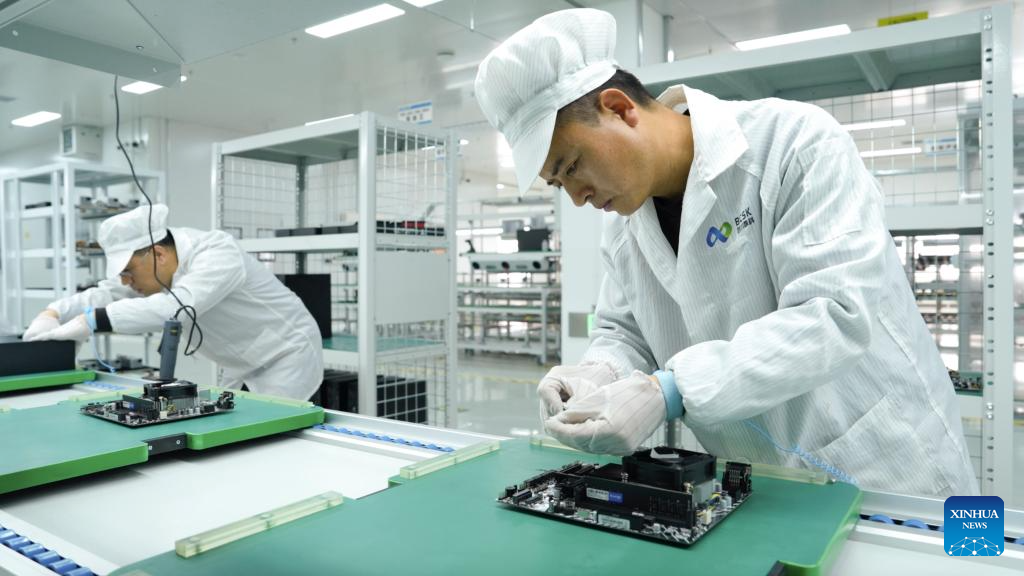 Employees assemble computer servers at a digital technology company in Hohhot, north China's Inner Mongolia Autonomous Region, on Jan. 20, 2025. (Photo by Zhang Jiahui/Xinhua)