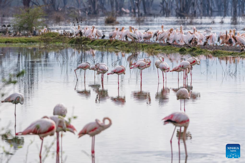 This photo taken on March 2, 2026 shows flamingos at the Lake Nakuru National Park in Nakuru County, Kenya.