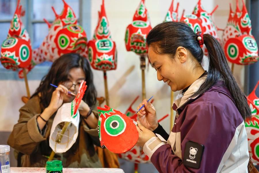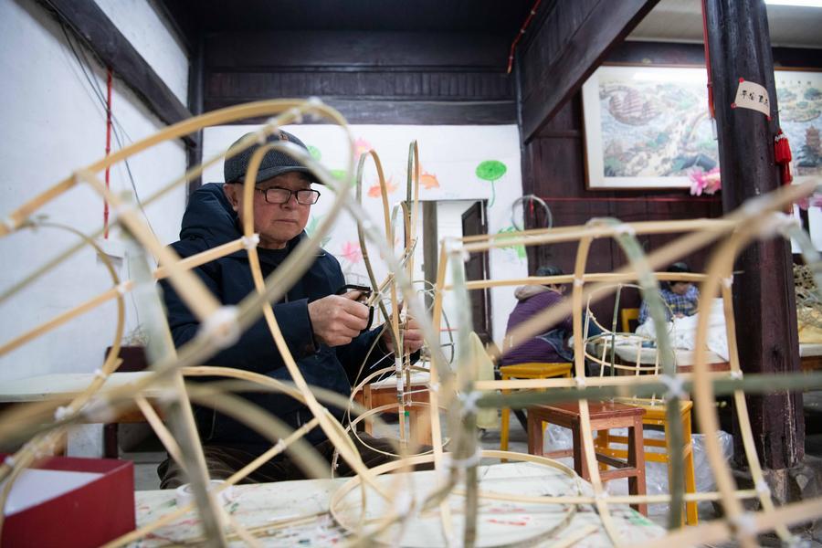 SHEXIAN, March 4 (Xinhua) -- Local villagers in Shexian County, east China's Anhui Province, have the tradition of making fish-shaped lanterns, an intangible cultural heritage, on festival days to pray for harvest and good fortune.