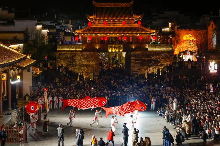 A tourist poses for photos with fish-shaped lanterns in Wangmantian Village, Shexian County, Huangshan City of east China's Anhui Province, March 1, 2026. (Photo by Shi Yalei/Xinhua)Villagers parade with fish-shaped lanterns in Wangmantian Village, Shexian County, Huangshan City of east China's Anhui Province, March 1, 2026. (Photo by Shi Yalei/Xinhua)A villager makes a fish-shaped lantern in Wangmantian Village, Shexian County of Huangshan City, east China's Anhui Province, March 1, 2026. (Photo by Fan Chengzhu/Xinhua)Tourists learn to make fish-shaped lanterns in Wangmantian Village, Shexian County of Huangshan City, east China's Anhui Province, March 1, 2026. (Photo by Shi Yalei/Xinhua)People watch a performance featuring fish-shaped lanterns in Shexian County, Huangshan City of east China's Anhui Province, Feb. 4, 2026. (Photo by Shi Yalei/Xinhua)Tourists shop at a souvenir shop themed on fish-shaped lanterns in Zhanqi Village, Shexian County, Huangshan City of east China's Anhui Province, March 1, 2026. (Xinhua/Zhang Duan)Villagers make fish-shaped lanterns in Zhanqi Village, Shexian County of Huangshan City, east China's Anhui Province, March 1, 2026. (Xinhua/Zhang Duan)People watch a fish-shaped lanterns performance in Shexian County, Huangshan City of east China's Anhui Province, Feb. 4, 2026. (Photo by Shi Yalei/Xinhua)Tourists shop at a souvenir shop themed on fish-shaped lanterns in Zhanqi Village, Shexian County, Huangshan City of east China's Anhui Province, March 1, 2026. (Xinhua/Zhang Duan)Performers holding fish-shaped lanterns perform in Shexian County, Huangshan City of east China's Anhui Province, Dec. 19, 2025. (Photo by Shi Yalei/Xinhua)A staff member presents a product at a souvenir shop themed on fish-shaped lanterns in Zhanqi Village, Shexian County, Huangshan City of east China's Anhui Province, Jan. 29, 2026. (Xinhua/Zhou Mu)A craftsman makes a fish-shaped lantern in Zhanqi Village, Shexian County of Huangshan City, east China's Anhui Province, March 1, 2026. (Xinhua/Zhang Duan)A fish-shaped lantern performing team stages a performance in Shexian County, Huangshan City of east China's Anhui Province, Feb. 28, 2026. (Xinhua/Zhang Duan)People watch a fish-shaped lanterns parade in Shexian County, Huangshan City of east China's Anhui Province, Feb. 14, 2026. (Photo by Shi Yalei/Xinhua)A tourist holding a fish-shaped lantern poses for photos in Zhanqi Village, Shexian County, Huangshan City of east China's Anhui Province, Feb. 14, 2026. (Photo by Shi Yalei/Xinhua)People watch a fish-shaped lanterns parade in Shexian County, Huangshan City of east China's Anhui Province, Feb. 14, 2026. (Photo by Shi Yalei/Xinhua)A craftswoman presents a fish-shaped lantern in Shexian County of Huangshan City, east China's Anhui Province, Feb. 28, 2026. (Xinhua/Zhang Duan)An aerial drone photo taken on Jan. 29, 2026 shows a fish-shaped lantern at an ancestral hall in Zhanqi Village, Shexian County of Huangshan City, east China's Anhui Province. (Photo by Fan Chengzhu/Xinhua)People watch a fish-shaped lanterns performance in Shexian County, Huangshan City of east China's Anhui Province, Feb. 4, 2026. (Photo by Shi Yalei/Xinhua)A tourist holding a fish-shaped lantern poses for photos in Zhanqi Village, Shexian County, Huangshan City of east China's Anhui Province, Feb. 14, 2026. (Photo by Shi Yalei/Xinhua)