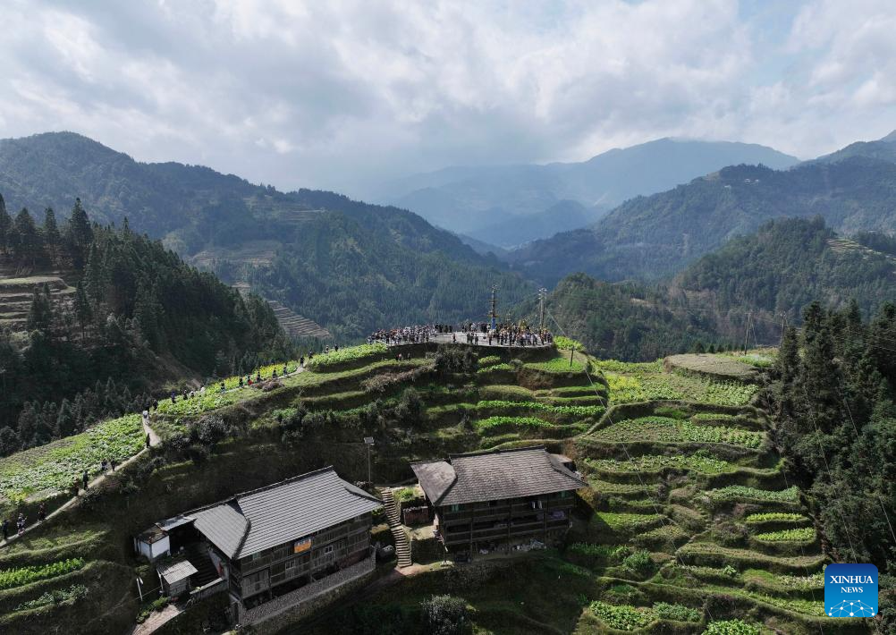 People attend a fair celebrating the "pohui" festival in a Miao ethnic village of Rongshui Miao Autonomous County, Liuzhou City, south China's Guangxi Zhuang Autonomous Region, March 7, 2026.