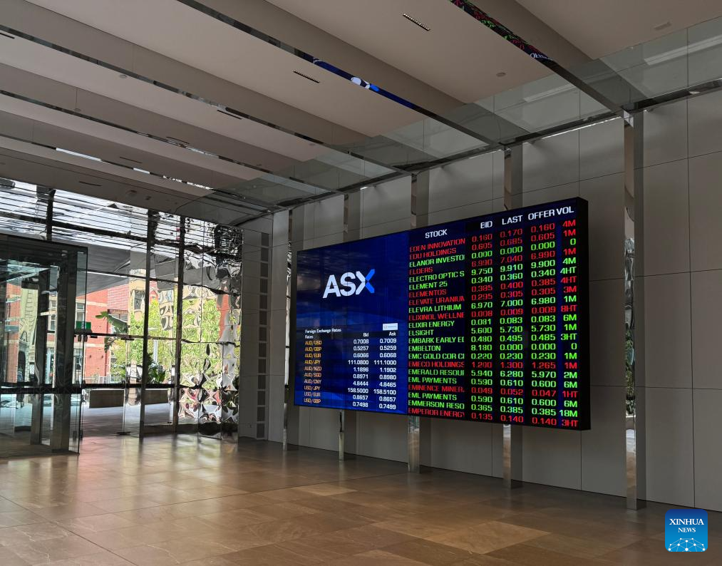 This photo taken on March 9, 2026 shows a view of the Australian Securities Exchange (ASX) in Perth, Australia. The Australian stock market recorded its worst single day in 11 months on Monday, falling by 2.9 percent as oil prices surged due to the ongoing conflict in the Middle East. (Photo by Zhou Dan/Xinhua)
