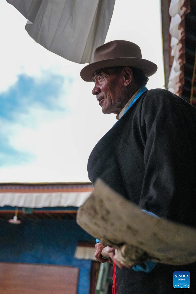 Dawa has witnessed the tremendous development of Xizang. Today, he lives with his family in a spacious, two-story Tibetan-style house, free from worries about food and clothing. (Xinhua/Jigme Dorje)