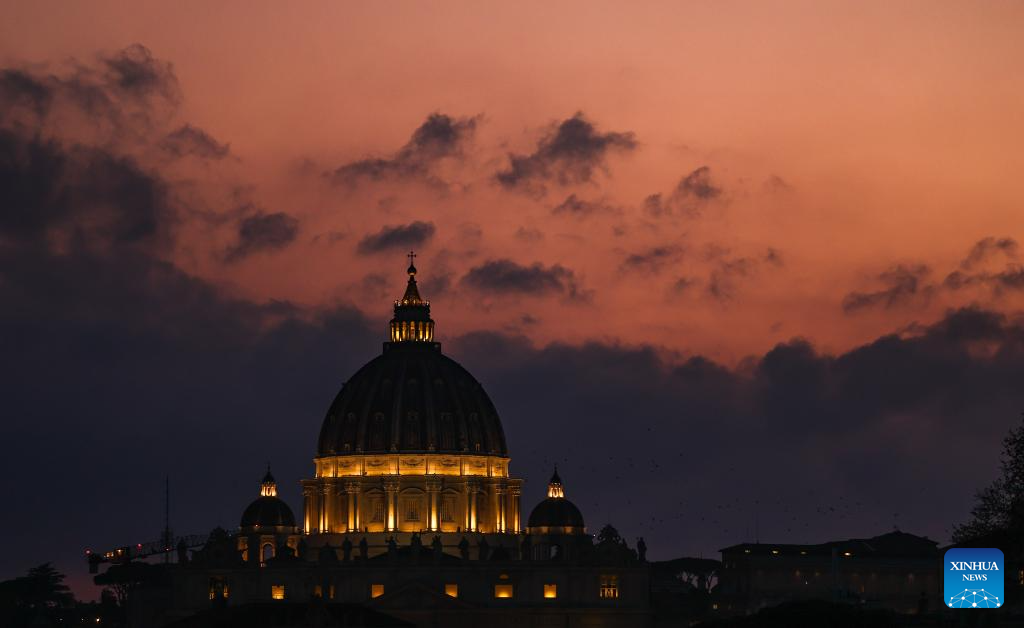 Photo taken on March 25, 2026 shows sunset view in Rome, capital of Italy. (Xinhua/Wang Kaiyan)