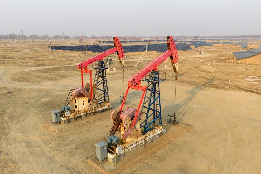 An aerial drone photo taken on March 25, 2026 shows the photovoltaic panels at the low-carbon demonstration zone of Lamadian Oilfield in Daqing, northeast China's Heilongjiang Province. (Xinhua/Wang Song)A worker maintains a pumpjack at Daqing Oilfield in Daqing, northeast China's Heilongjiang Province, March 6, 2026. (Xinhua/Wang Song)Technicians inspect the photovoltaic power generation equipment at the low-carbon demonstration zone of Lamadian Oilfield in Daqing, northeast China's Heilongjiang Province, March 25, 2026. (Xinhua/Wang Song)A technician inspects the photovoltaic power generation equipment at the low-carbon demonstration zone of Lamadian Oilfield in Daqing, northeast China's Heilongjiang Province, March 25, 2026. (Xinhua/Wang Song)Technicians check the operation of the wind power equipment at the low-carbon demonstration zone of Lamadian Oilfield in Daqing, northeast China's Heilongjiang Province, March 25, 2026. (Xinhua/Wang Song)An aerial drone photo taken on March 25, 2026 shows the pumpjacks at the low-carbon demonstration zone of Lamadian Oilfield in Daqing, northeast China's Heilongjiang Province. (Xinhua/Wang Song)A drone photo taken on March 25, 2026 shows the wind power generation equipment at the low-carbon demonstration zone of Lamadian Oilfield in Daqing, northeast China's Heilongjiang Province. (Xinhua/Wang Song)An aerial drone photo taken on March 25, 2026 shows the photovoltaic panels at the low-carbon demonstration zone of Lamadian Oilfield in Daqing, northeast China's Heilongjiang Province. (Xinhua/Wang Song)A technician inspects the photovoltaic power generation equipment at the low-carbon demonstration zone of Lamadian Oilfield in Daqing, northeast China's Heilongjiang Province, March 25, 2026. (Xinhua/Wang Song)Staff members monitor the operation data of new energy equipment at the intelligent command center of Lamadian Oilfield in Daqing, northeast China's Heilongjiang Province, March 25, 2026. (Xinhua/Wang Song)