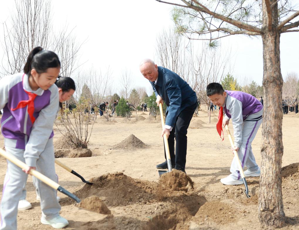 Xi and other Party and state leaders, including Li Qiang, Zhao Leji, Wang Huning, Cai Qi, Ding Xuexiang and Li Xi, arrived at the tree-planting site in Changping District of Beijing in the morning. Xi waved to the crowd to extend his greetings before picking up a shovel to join the activity. He planted saplings of multiple types of trees.