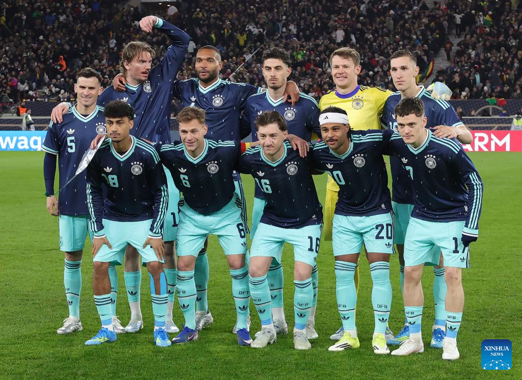 Players of Germany pose before an international friendly football match between Germany and Ghana in Stuttgart, Germany, March 30, 2026. (Photo by Philippe Ruiz/Xinhua)