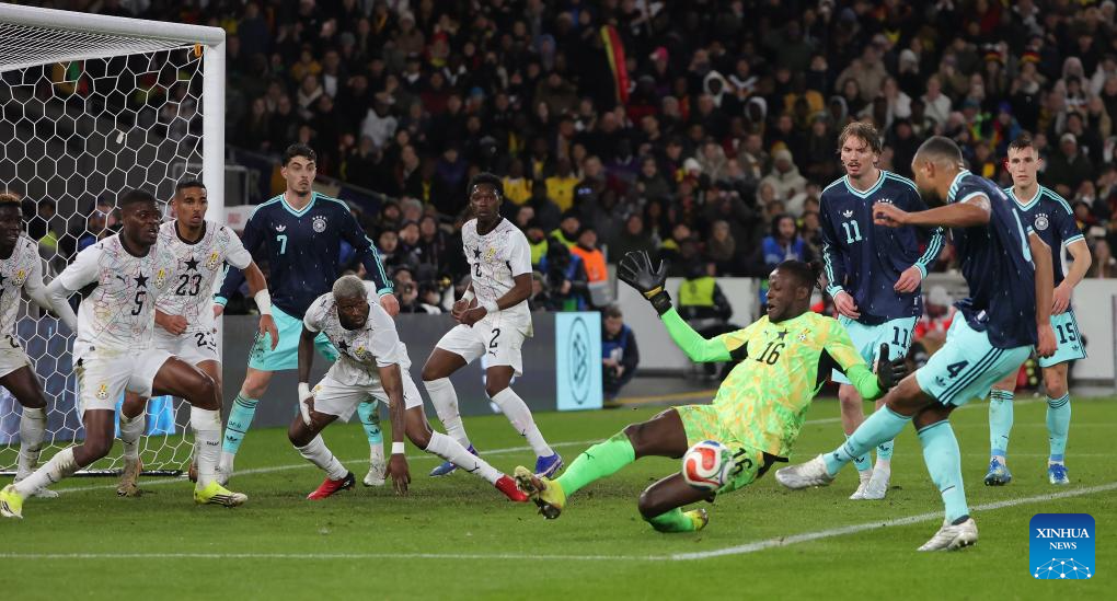 Benjamin Asare (C), goalkeeper of Ghana competes during an international friendly football match between Germany and Ghana in Stuttgart, Germany, March 30, 2026. (Photo by Philippe Ruiz/Xinhua)